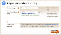 blog, que podremos cambiar más tarde, y le asignaremos una dirección de internet, que no podremos cambiar.Pero antes de continuar hay que hacer clic en el enlace que dice Comprobar la disponibilidad para ver si ese nombre ya está elegido por otro miembro; y suele ocurrir con frecuencia que ya esté utilizado, así que hay que aguzar el ingenio. Si ocurre esto, nos avisan con la frase: Lo sentimos, esta dirección del blog no está disponible.